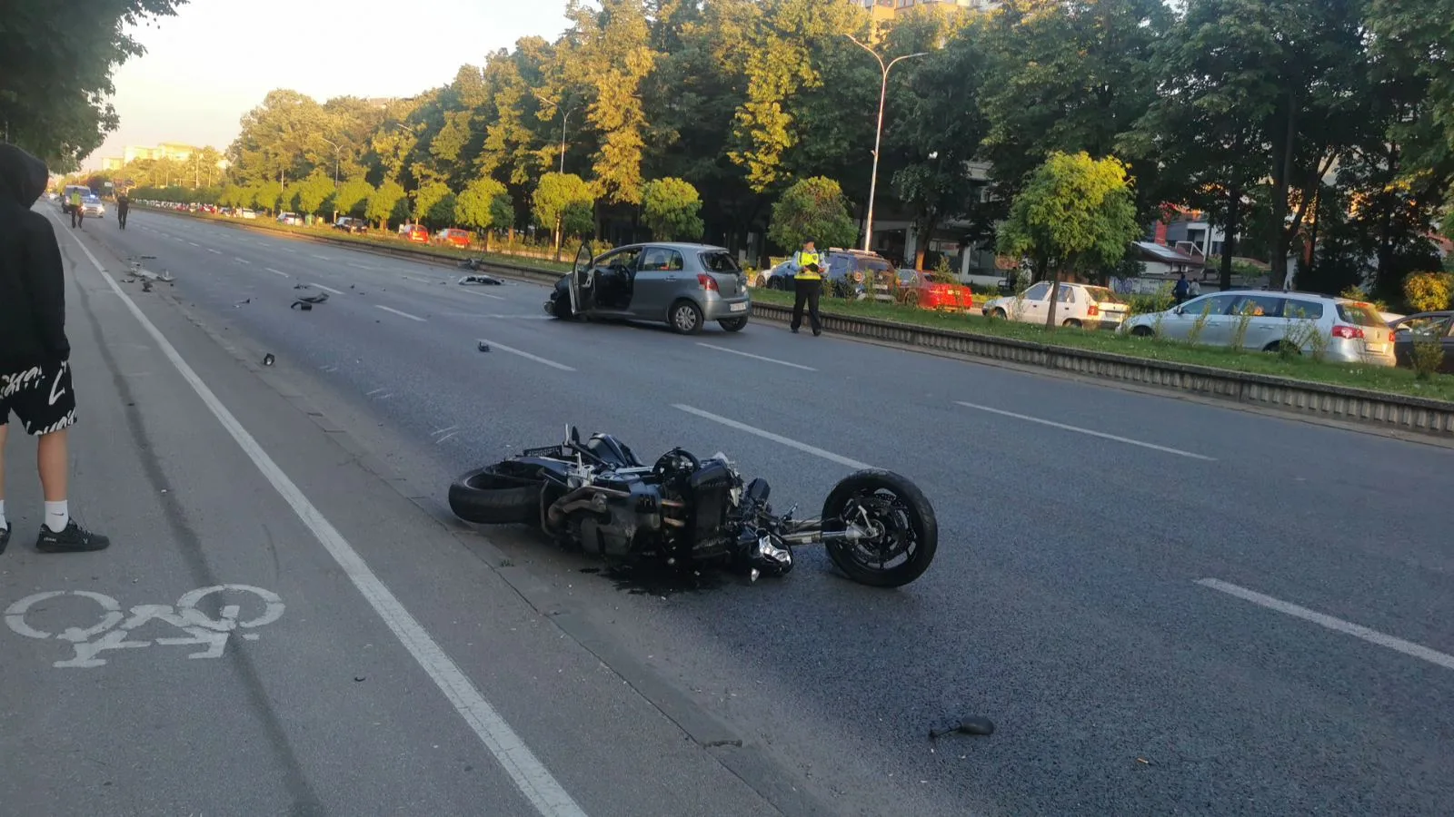 Попладнево на „Партизанска“ во Скопје, после Скопје сити мол, се случи сообраќајна несреќа, меѓу мотор и автомобил. Од јачината на