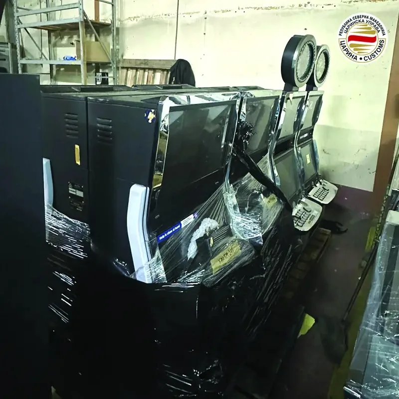 Девет апарати за игри на среќа, како и 405 делови за одржување, се запленети откако увозник се обидел да ги