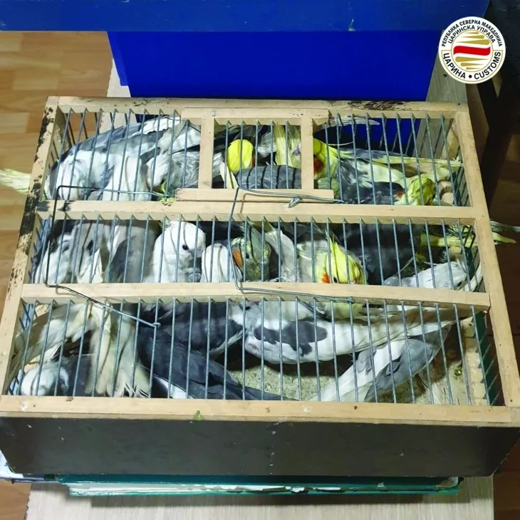 Вкупно 47 папагали се запленети откако српски државјанин сакал без да ги пријави да ги внесе во државава, соопштија денеска