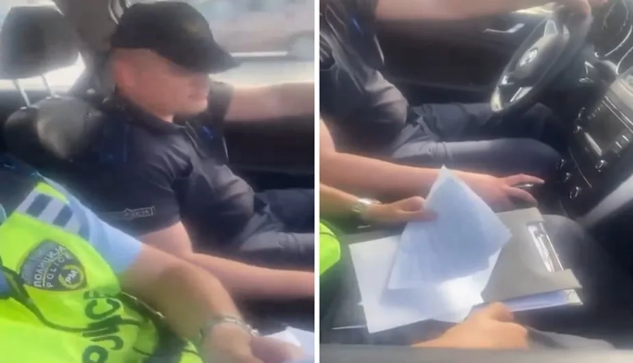 На социјалните мрежи масовно се шири видео на кое што се гледа како двајца полицајци се обидуваат да излезат на