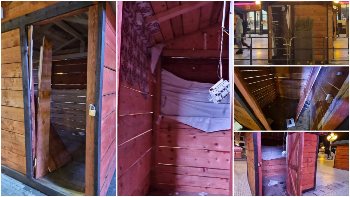 Куќарките кои Град Скопје за Нова година ги постави на Плоштадот Македонија се искршени и затрупани со ѓубре. Иако новогодишната