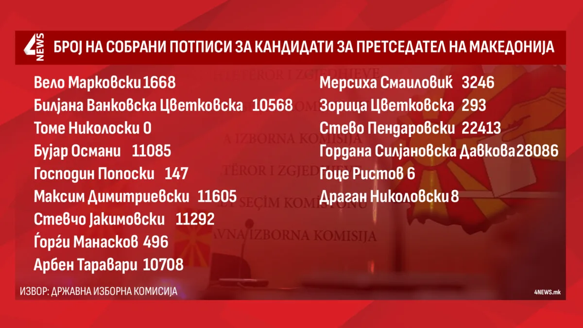 Изборниот роковник и Државната изборна комисија (ДИК) кажаа стоп за собирање на потписи за кандидати за претседател на Македонија. Собирањето