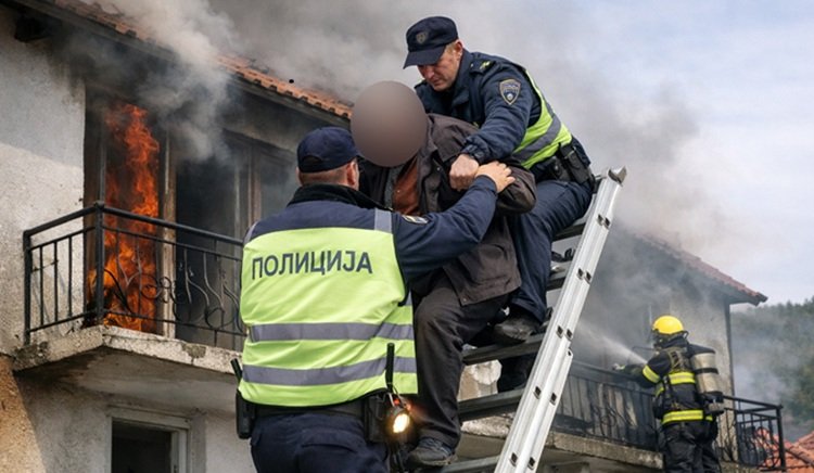 ПОЛИЦАЈЦИ СПАСИЈА 80-ГОДИШЕН МАЖ ОД ЗАПАЛЕНА КУЌА Бил заглавен на тераса на вториот кат