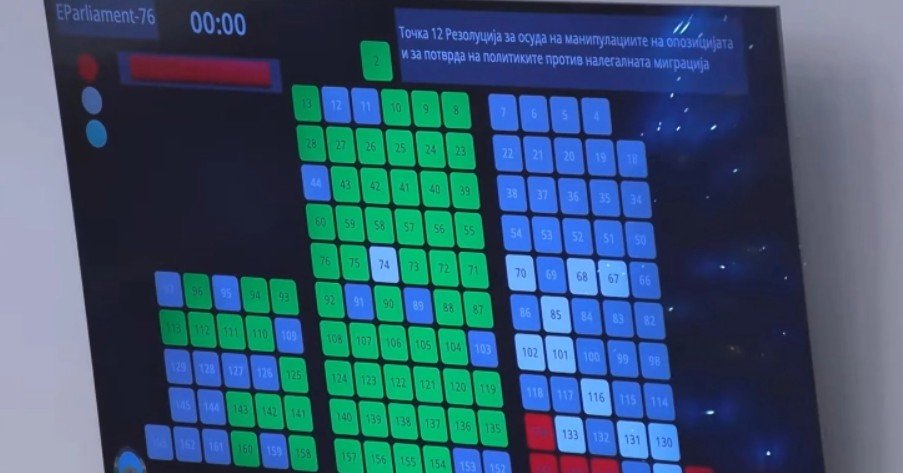 Собранието со 65 гласа „за“ и пет гласа „против“ попладнево ја донесе „Резолуцијата за осуда на манипулациите на опозицијата и за потврда на политиките против нелегалната миграција“.