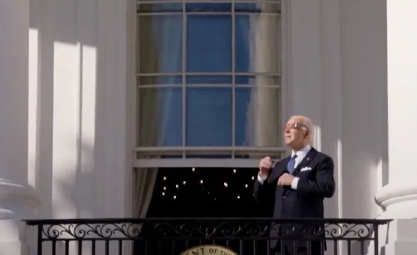 ВИДЕО Америка го виде затемнувањето на Сонцето: Бајден од терасата на Белата куќа ги предупреди