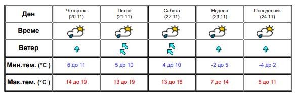Најстудено ќе биде во Маврово и во Берово, со утринска температура до 7 степени. Најтопло ќе биде во Гевгелија и во Демир Капија, со максимална температура до 17 степени Целзиусови.