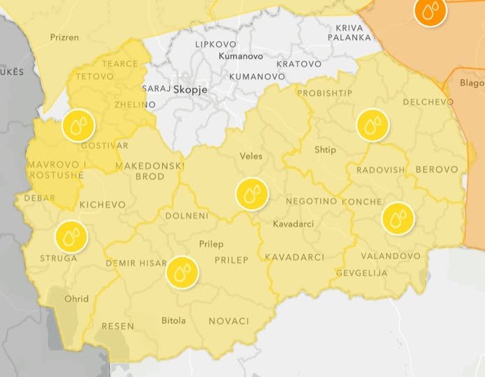 Управата за хидрометеоролошки работи предупредува дека во текот на ноќта и утре претпладне ќе има повремени локални врнежи од дожд, кои наместа ќе бидат пообилни, со количина од над 40 литри на квадратен метар за 24 часа. Ќе дува умерен до засилен ветер од јужен правец.
